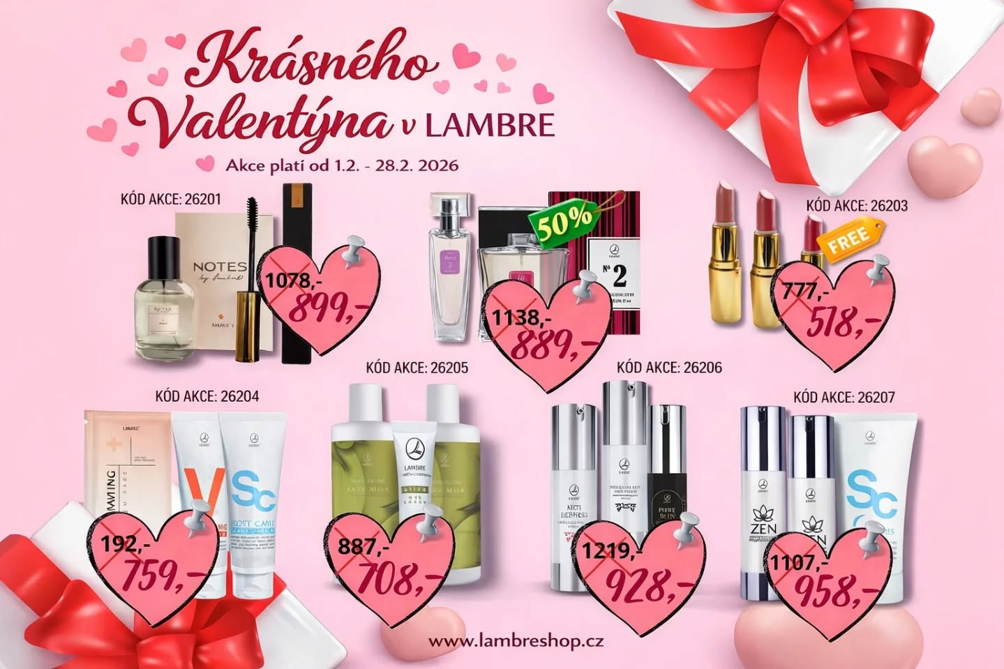 Akční leták Lambre na ÚNOR 2026. Opět máme krásnou nabídku výhodných sad s produkty zdarma 🎁❤️